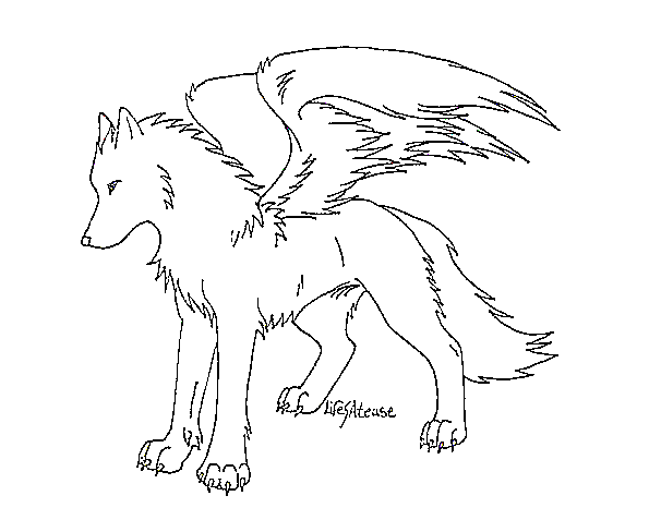 Winged Wolf Line Art Edited By Crimsonwolfsobo Deviantart