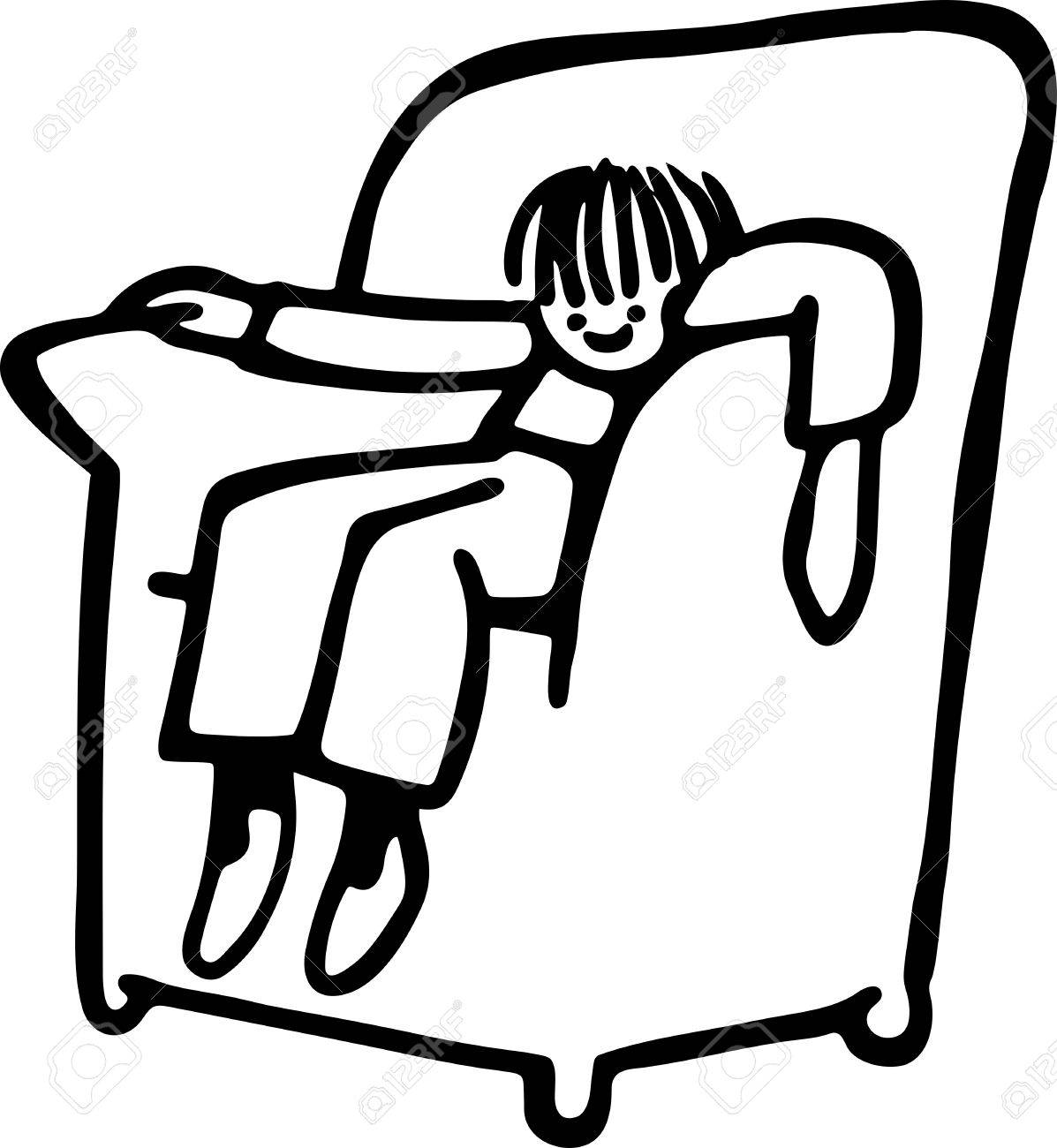 Image Of Simple Cute Line Drawing Of A Tired Little Boy Slumped In An