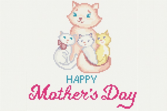 Image Of Cute Kitties Mom And Baby Easy Cross Stitch Pattern Simple Cross Stitch Mothers Day Pattern Warm Gift For Mum