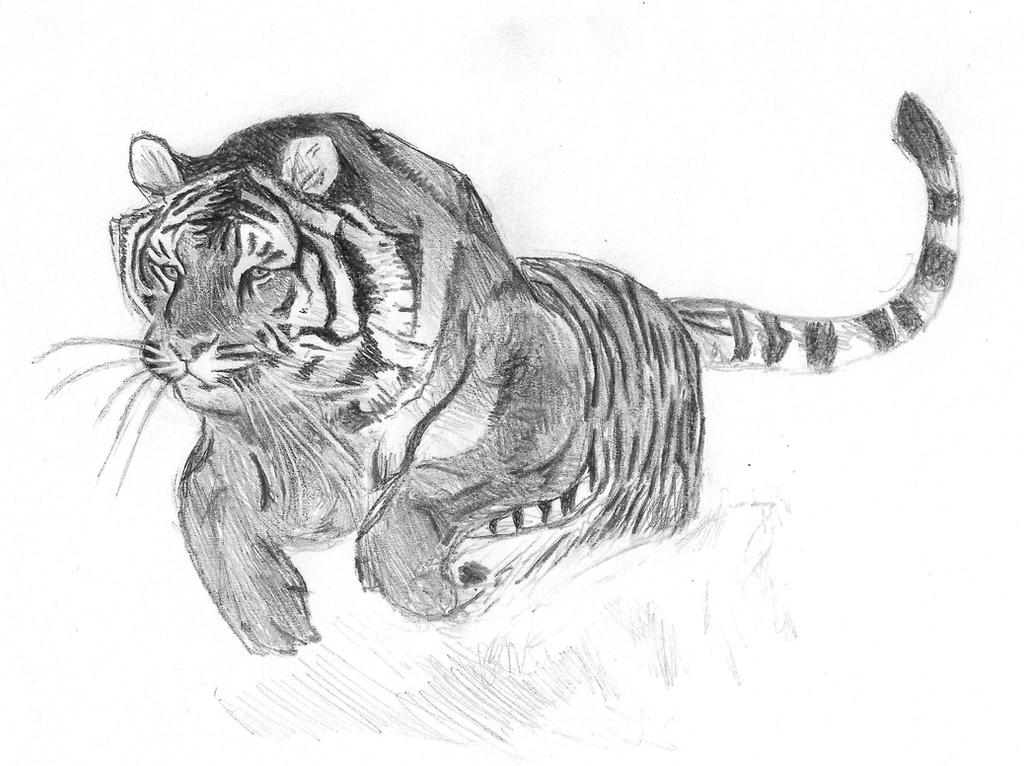 Image Of Sprinting Tiger Pencil Sketch By Gracethelittleartist On