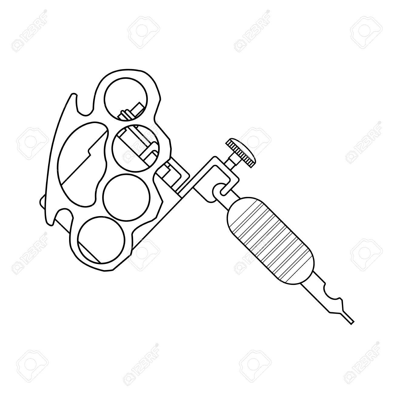 Image Of Tattoo Machine Linear Drawing Thin Line Illustration Tattoo