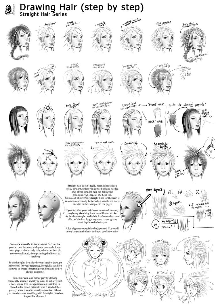 Image Of Little Hair Tutorial 2 How To Draw Straight Hair By Cheriin