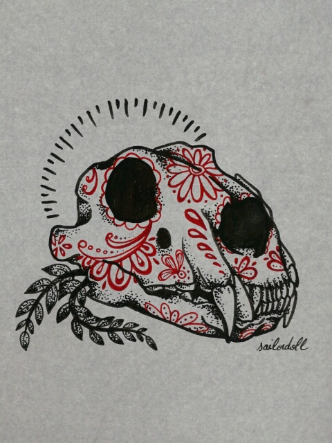 Image Of My Work Inked Lion Lamb Skulls Stuck With Pins